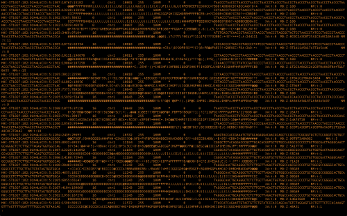 At the end of this step we will have a .sam (Sequence Alignment Map) file, which will have each of our raw reads aligned to certain positions on the human reference. However, the reads will be in no useful order, and all the chromosomes and locations are mixed together.